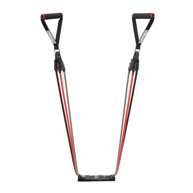 - The Reebok Power Tube fitness gum set is designed for general development exercises, toning and shaping the figure. It is perfect for training both the upper and lower muscles. It contains 3 colored detachable rubbers (gray, black and red), with which you can adjust the resistance force (maximum 12.5 kg) and adapt it to the currently performed exercises.