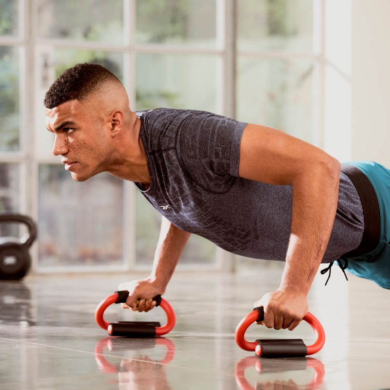 Reebok push-up grips are designed to strengthen your muscles and make them work harder while exercising push-ups. They will be useful to anyone who wants to improve and develop their skills in functional training. The handles allow you to expand the range of motion while exercising. You can drop an additional 11.5 cm during each repetition.